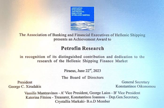 In addition, Mr. Ted Petropoulos, head of Petrofin Research, has made numerous presentations in shipping conferences and shipping training courses in the UK, Greece, Cyprus, etc, since 1992, as well as provided articles and interviews to leading financial and shipping organizations and publications since the 1980s, such as Bloomberg, Lloyd’s List, Lloyd’s Shipping Economist, Trade Winds, Seatrade, Nafs, Naftiliaki, Outlook, Naftika Chronika, Ship Manager International, Fairplay, Bimco, International Chamber of Commerce, Marine Money, Shipping Finance, Financial Times, Greek dailies, Shipping websites, and others.